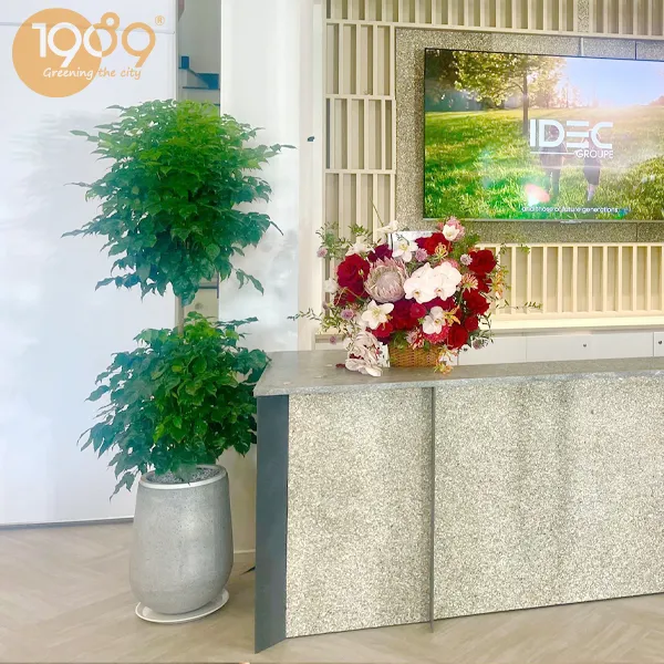Cây xanh văn phòng - cây để bàn, Chậu đá mài - chậu xi măng.