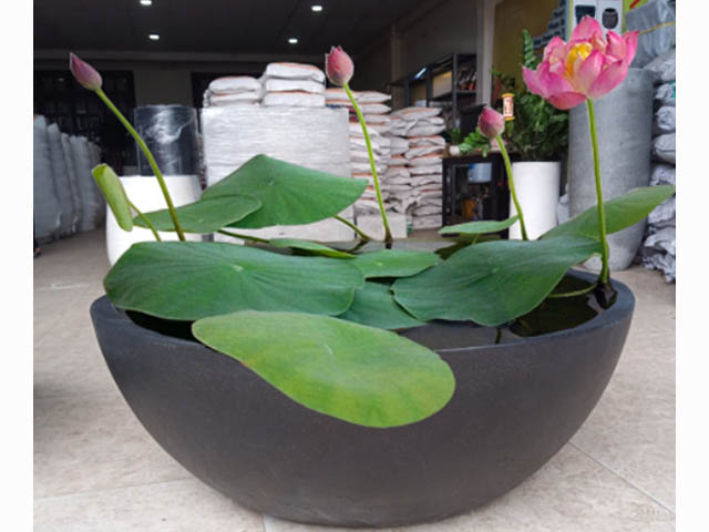 Mô phỏng cho sen nước trong chậu xi măng tròn lớn